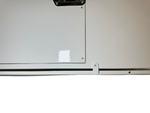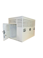 Professional K9 Series Tactical Dog Crate. Large police and military working dog crate. Manufactured from heavy duty .090 mill finish aluminum, this crate is built tough for heavy use. Fully powder coated textured black inside and out. Double wall door has a stainless T-handle with 3-point latching system for strength and security and is slotted for a crate cooling fan. Locking mechanism covered on the inside to deter K9 from biting at it and trying to open door. Features spring loaded rattle-free carrying handles and heavy-duty D-rings to secure crate in your vehicle. End entry door. All measurements are in Inches.